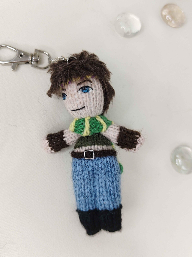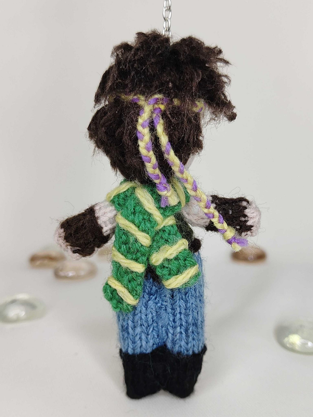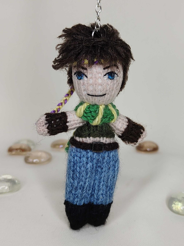 This handmade knitted mini art doll, inspired by Joseph Joestar (Jojo's Bizarre Adventures), is designed as a tiny companion to adopt or gift. It can be displayed as decoration, hung up, or attached to a bag or pouch.