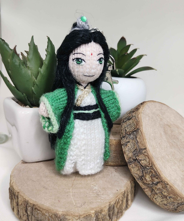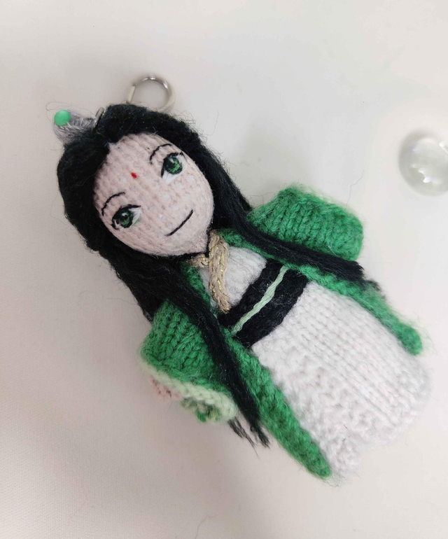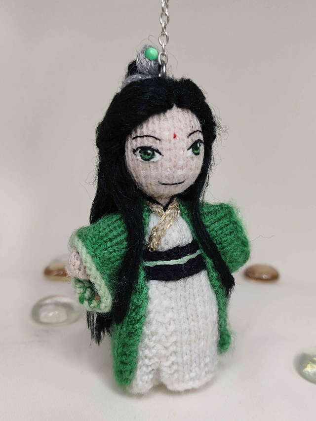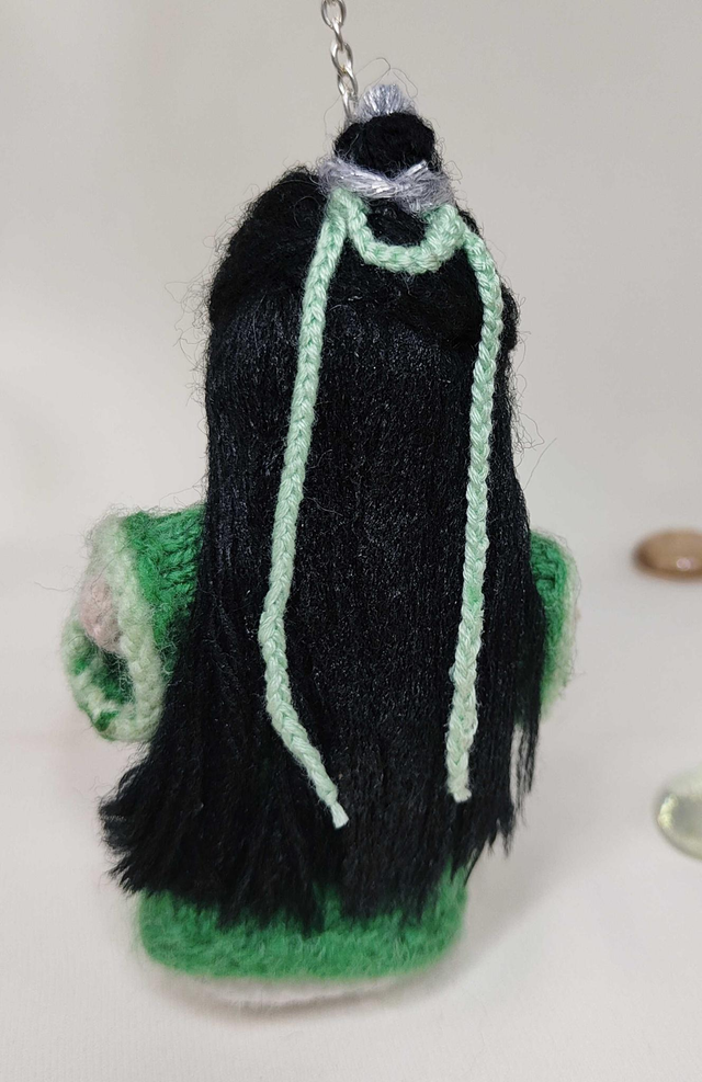 This handmade knitted mini art doll, inspired by Shen Qingqiu (The Scum Villain's Self Saving System), is designed as a tiny companion to adopt or gift. It can be displayed as decoration, hung up, or attached to a bag or pouch.